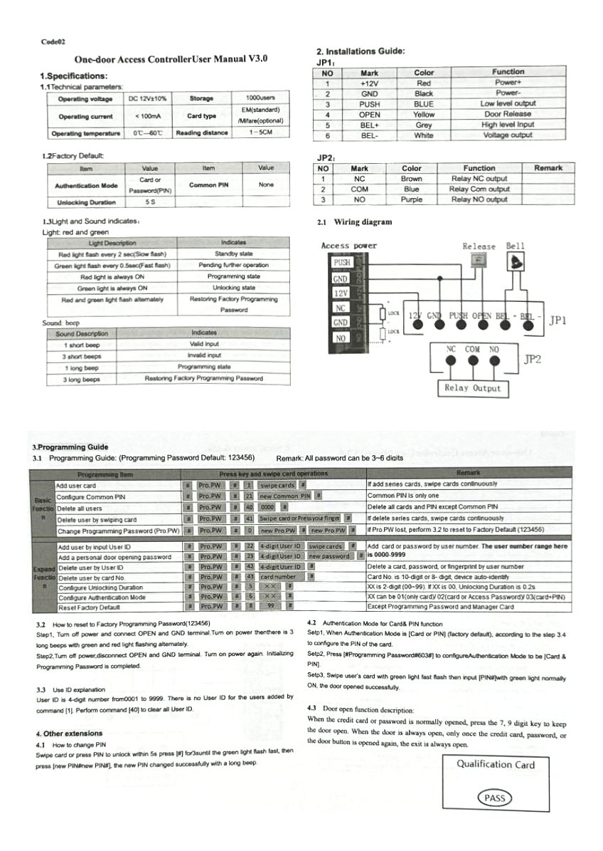 Teclado Control Acceso Rfid 1000 User 120mm Id Em 125 Khz